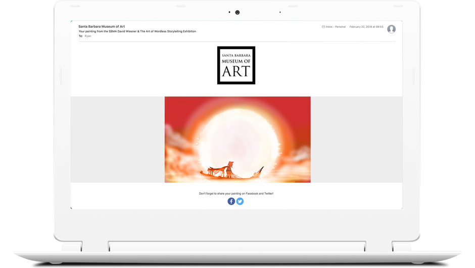 Email a patron a copy of their artwork when submitted and share to social media. Customize the email template with an unique message and style.